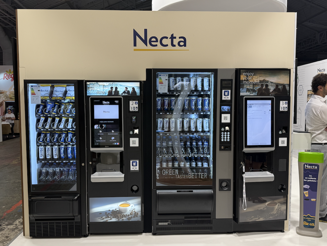 Le groupe Evoca poursuit la mue et le stand du salon illustrait bien sa volonté de clarifier ses offres autour de trois marques Necta, Gaggia Milano et enfin Saeco qui déclinaient toutes trois leurs nouveautés. Les premières concernent l’offre distribution automatique qu’incarne aujourd’hui pleinement Necta. Chacun a pu découvrir la ligne Barista au travers des Baristas Pro Touch 500 et 600. Ces deux automates coeur de gamme bénéficient d’une esthétique design et moderne avec une dalle centrale 21,5 pouces, un large receptacle de distribution, une connectivité induite. Ils sont équipés du groupe Z4000 et doivent permettre aux opérateurs de décliner une offre contemporaine. A noter qu’en complément vient la gamme snack impulse rebaptisée Gusto qui permet de décliner une offre complète distribution automatique pour tous types d’environnements. Le second pilier concerne l’OCS et il est désormais unifié sous la marque Saeco. Une logique qui permet désormais de disposer d’une offre des plus complète et enrichie car Vending Show a permis de découvrir la gamme Aurora une offre de dispensers automatiques (4 versions disposnibles) compacts et plug & play autour d’une offre bean2cup (café grain) et multi boissons via une déclinaison de boissons à base de lait. Cette ligne est destinée aux petits bureaux et espaces de travail, de salles de réunion.