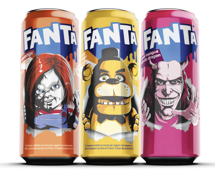 Pour l’occasion, Fanta habille ses canettes de personnages terrifiants déclinés sur plusieurs parfums : Fanta Orange, Orange Sans Sucres, Citron Frappé, Mangue Fruit du Dragon et Délice Tropical.