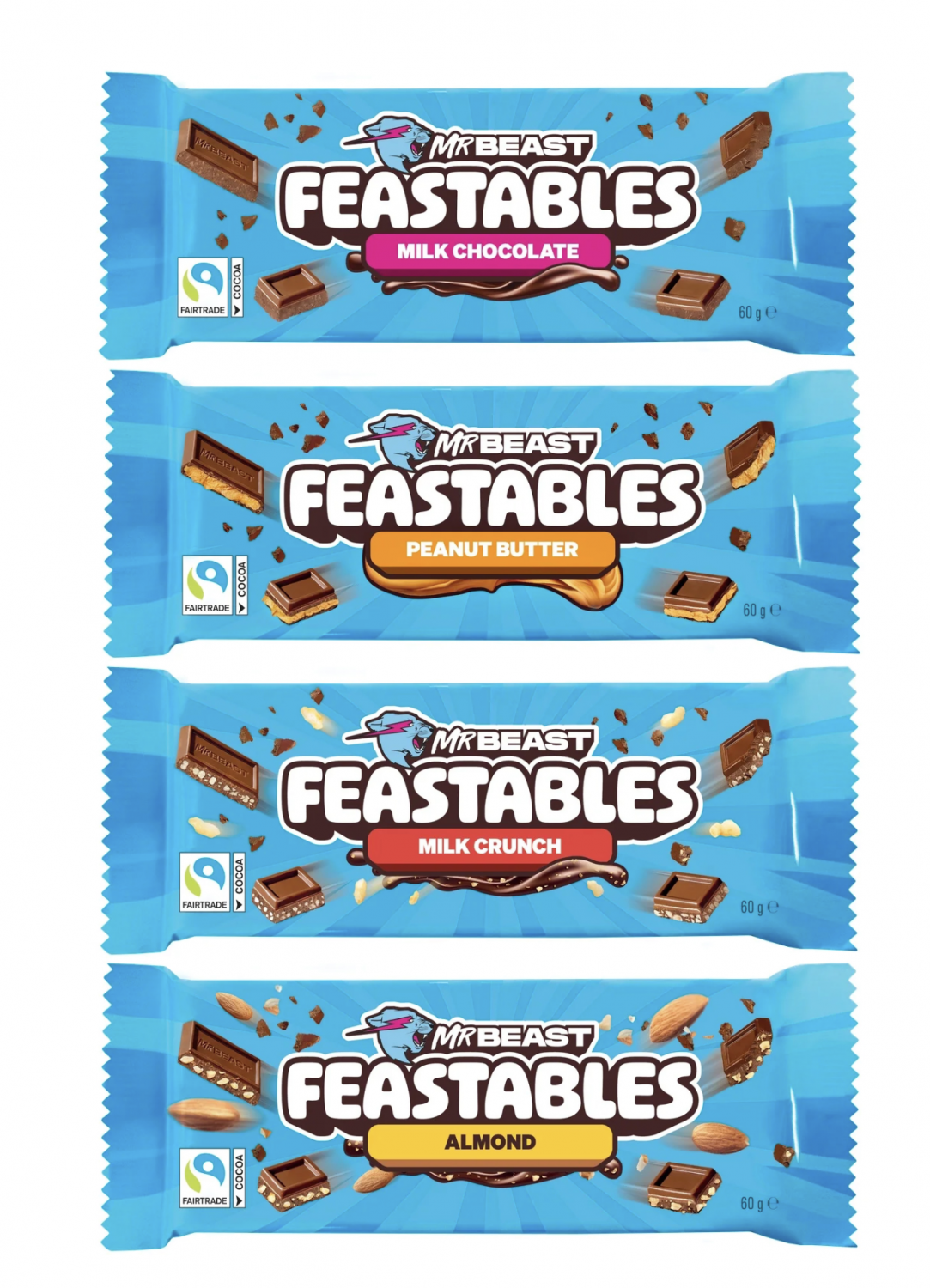 Le chocolat devient ici un produit média. Chaque collaboration intègre la marque de façon visible, assumée, parfois même centrale dans le concept. L’opération dépasse le cadre du placement de produit classique pour s’inscrire dans une logique d’activation commerciale à grande échelle, pensée pour accompagner l’arrivée de Feastables en rayon.
