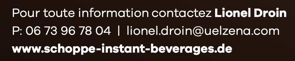 Lionel Droin : Notre « discrétion » tient au fait que Schoppe Instant Beverage est le fournisseur de produits professionnels des secteurs Vending & Horeca en Europe. Ce positionnement nous place avant tout comme un partenaire-fournisseur dont la vocation est de développer des gammes techniquement et qualitativement adaptées aux demandes de nos clients. Notre force tient dans notre capacité à répondre de manière rapide, professionnelle tant sur notre capacité à honorer les commandes et les engagements volumes associés que d’apporter une régularité des recettes et une tenue de ces dernières dans le temps. Cette logique nous a permis de suivre et accompagner nos clients et partenaires, malgré les hausses et fluctuations des prix des matières premières comme le café, le cacao, le sucre depuis 2022. Schoppe Instant Beverage s’est avéré un partenaire fournisseur sur qui s’appuyer et qui n’a pas cherché pour parler franchement comme à mon habitude à se sucrer sur le dos de ses clients : nous avons naturellement répercuté les hausses de manière contenue dans le temps et su également répercuter les baisses afin de ne pas peser sur les comptes d’exploitation des professionnels qui reconnaissent la justesse de cet accompagnement.
